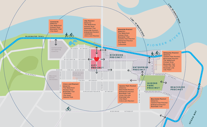 - Enhanced connectivity between the City Centre, Riverside, and the Pioneer River foreshore.